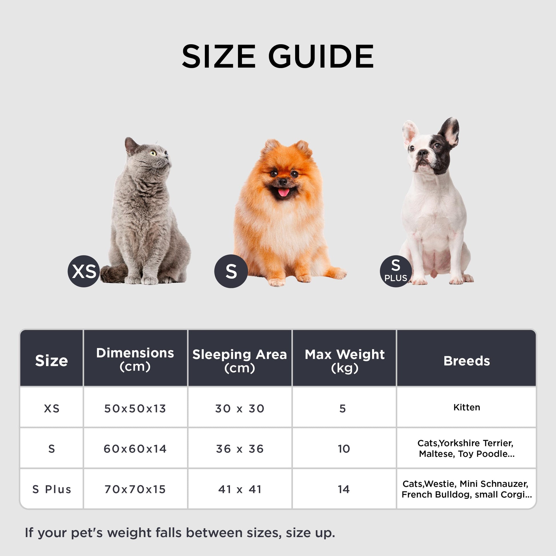 Multiple Sizes Available Petarta calming pet beds are available in: